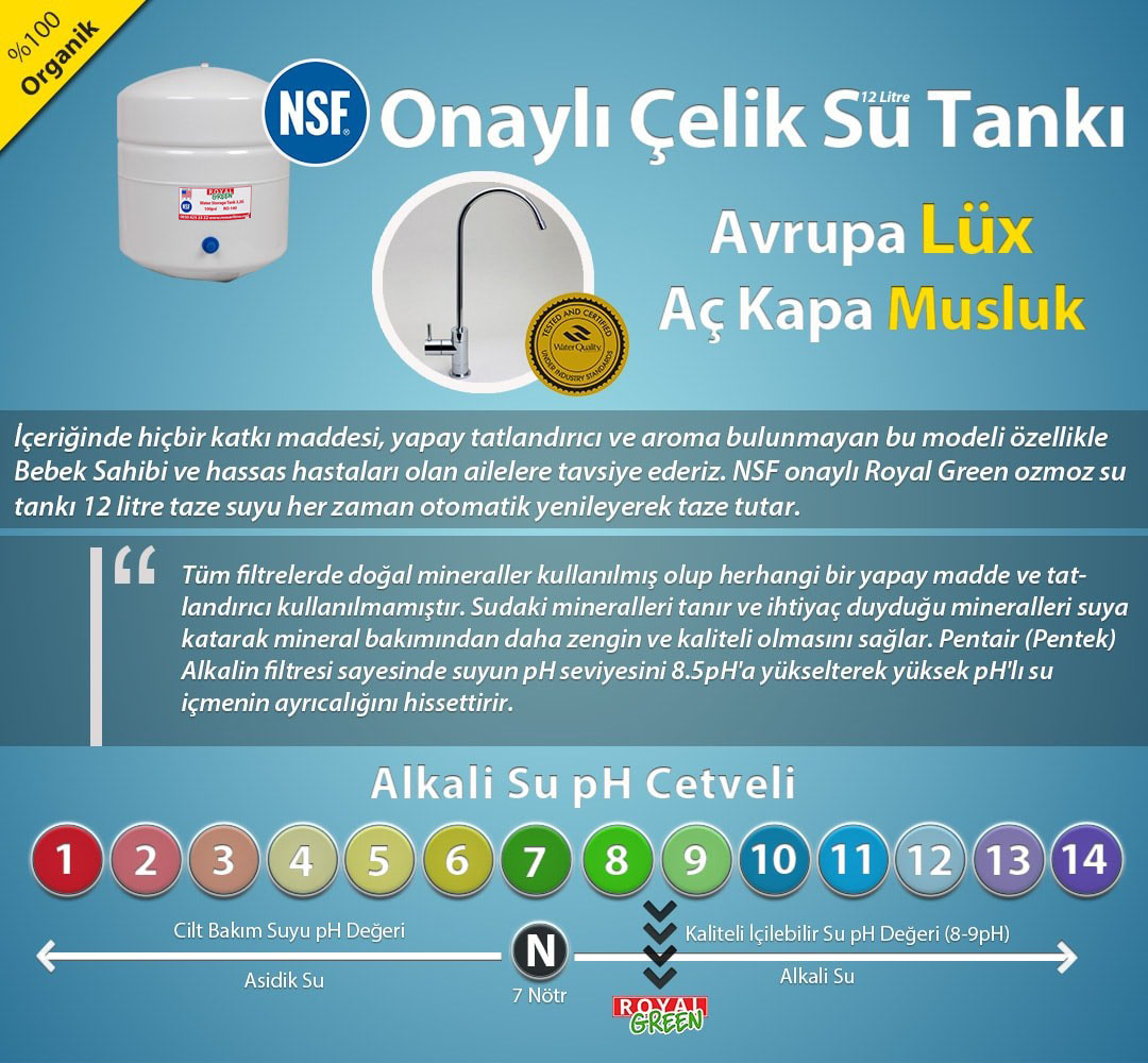 Diğer markalar ile kıyaslandığı takdirde verilen garanti süresi ve satış sonrası destek ile birlikte çok daha etkileyici bir hal alıyor. Su arıtma tavsiyesi kesinlikle Royal Green markası üzerinden yapılmalıdır çünkü montaj hizmeti de sunuluyor ve cihazlarınız en kısa sürede kullanıma hazır hale getiriliyor. Çok sayıda insanın tavsiye ettiği ve olumlu yorum bıraktığı bu markanın ürünlerine sizler de online olarak göz atabilir ve incelemelerinizi daha derinlemesine yapabilirsiniz. Fark yaratan kalite ve daha uzun ömürlü ürünler ile birlikte emin olun sizler de verdiğiniz paranın hakkını en iyi şekilde elde etmiş olacaksınız. Sularınızı daha sağlıklı hale getirmek ve daha doğal bir şekilde tüketmek için harekete geçmenin tam vakti! Royal Green kapılarını ziyaret ederek su arıtma sistemleri hakkında her tür bilgiye kolaylıkla ulaşabilir ve bilgi sahibi olabilirsiniz.